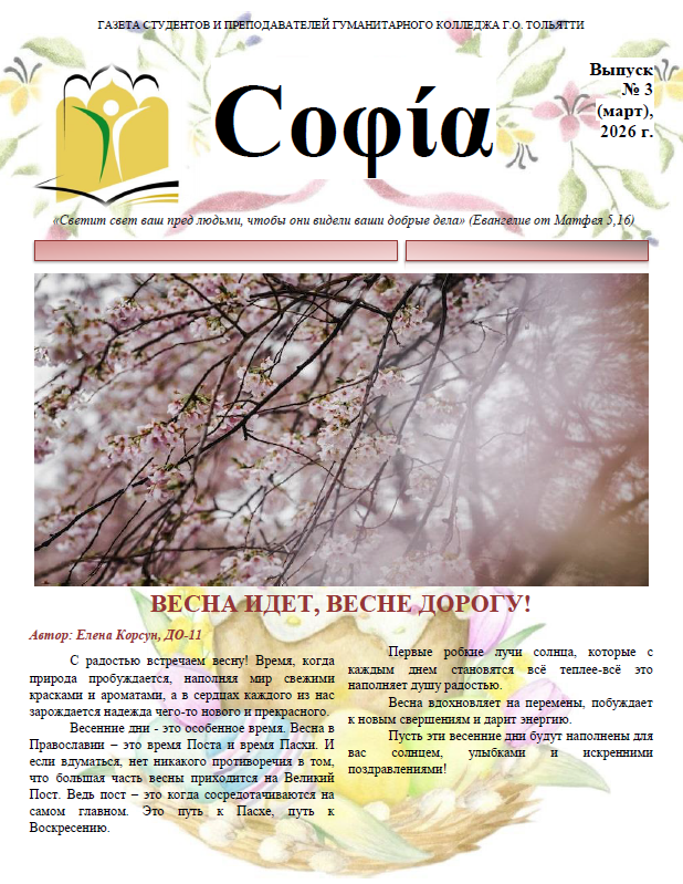 Представляем мартовский выпуск газеты «Софии», посвященный весне!