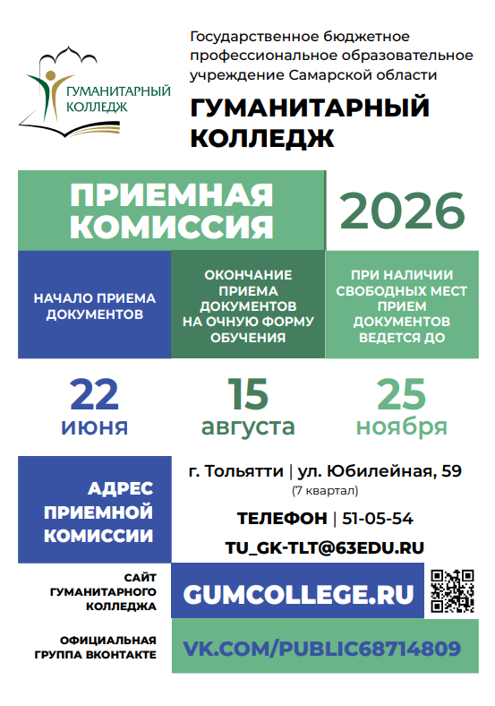 Приглашаем на Единый день открытых дверей в Гуманитарный колледж Тольятти 18 апреля 2026 г. в 12 ч.