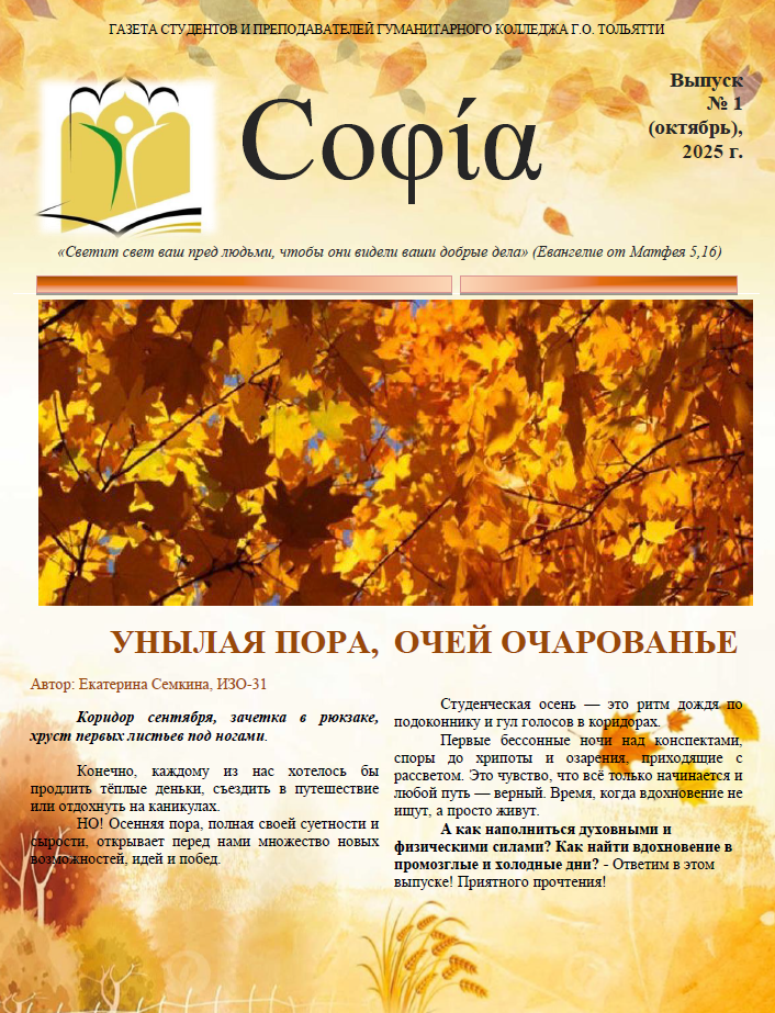 Дорогие друзья, предлагаем вашему вниманию первый номер студенческой газеты «София» в наступившем учебном году!