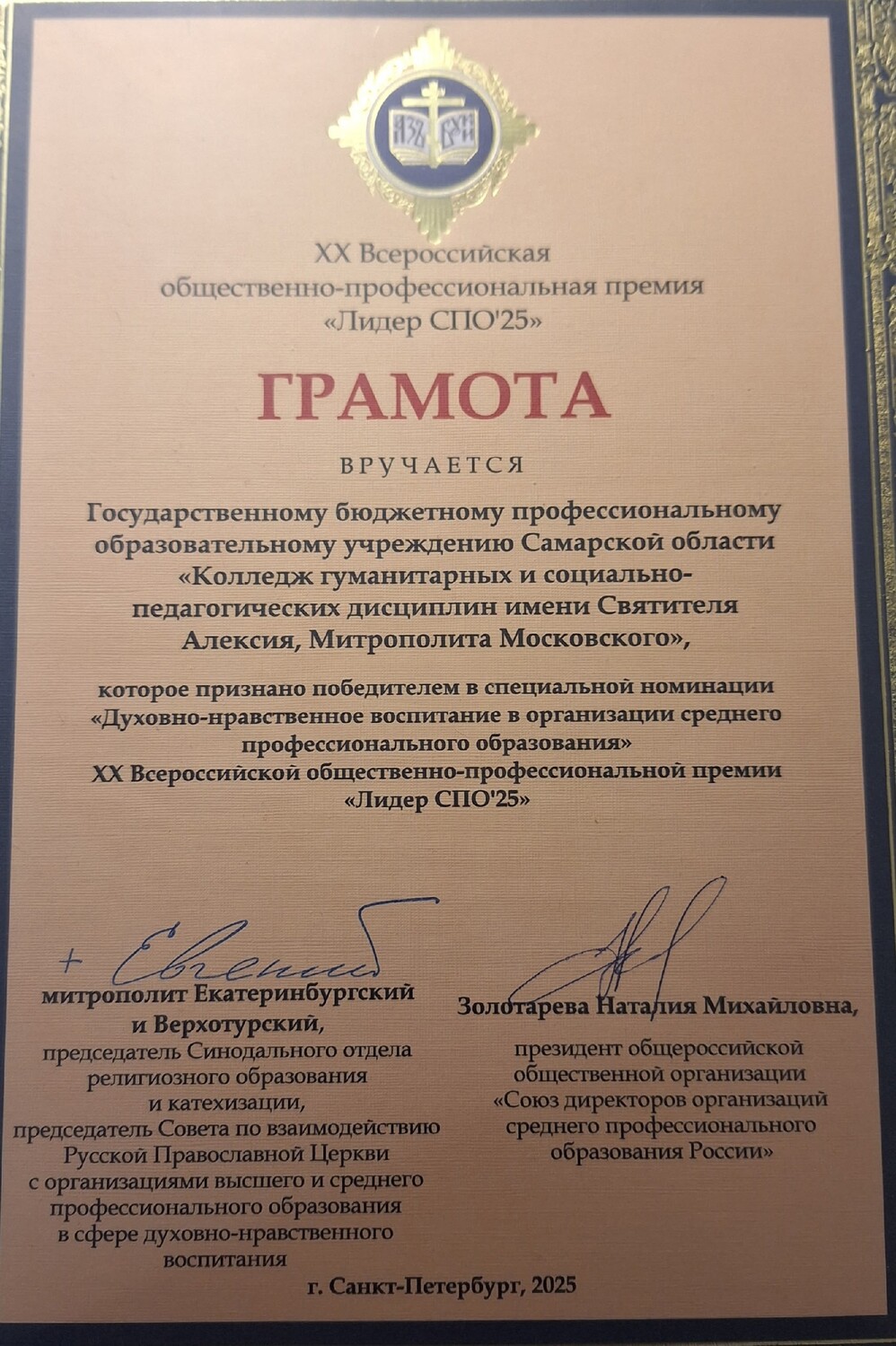 Гуманитарный колледж Святителя Алексия – в числе победителей и призеров общественно-профессиональной премии «Лидер СПО»!