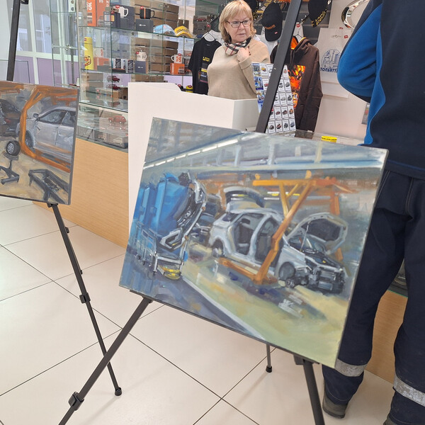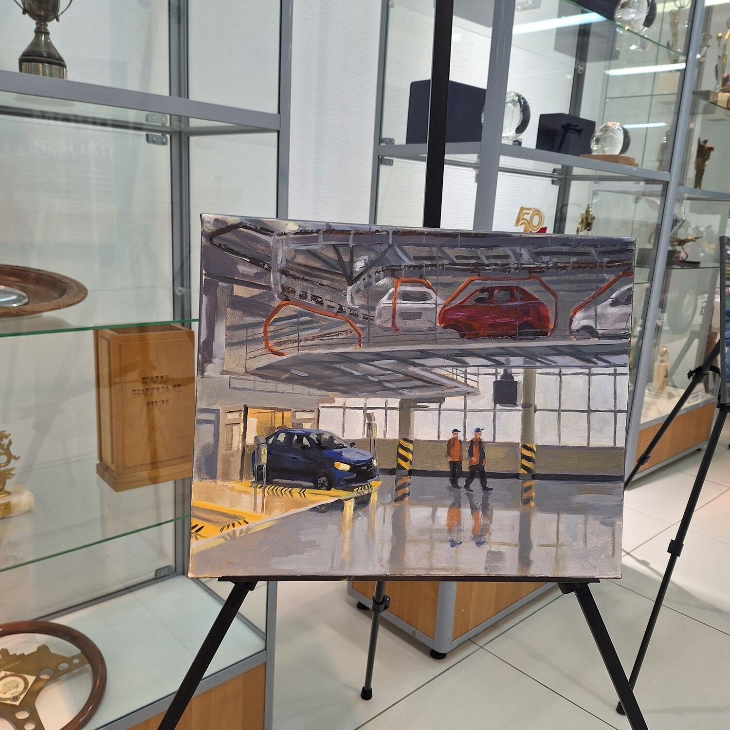 Напомним, что наши живописцы 16 декабря 2025 г. вместе с преподавателями приехали на производство, на главный конвейер, развернули непривычные в индустриальной среде мольберты, этюдники, заняли места в безопасной зоне и начали рисовать АВТОВАЗ. В мастерских колледжа работы были закончены и выставлены в Музее АВТОВАЗа.