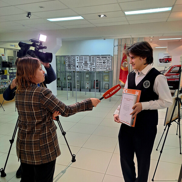 20 февраля 2026 г. сам президент АВТОВАЗа М.Ю. Соколов прибыл в Музей завода, где расположилась выставка работ, чтобы вручить 12 студентам и 3 педагогам Гуманитарного колледжа благодарственные письма и подарки!
