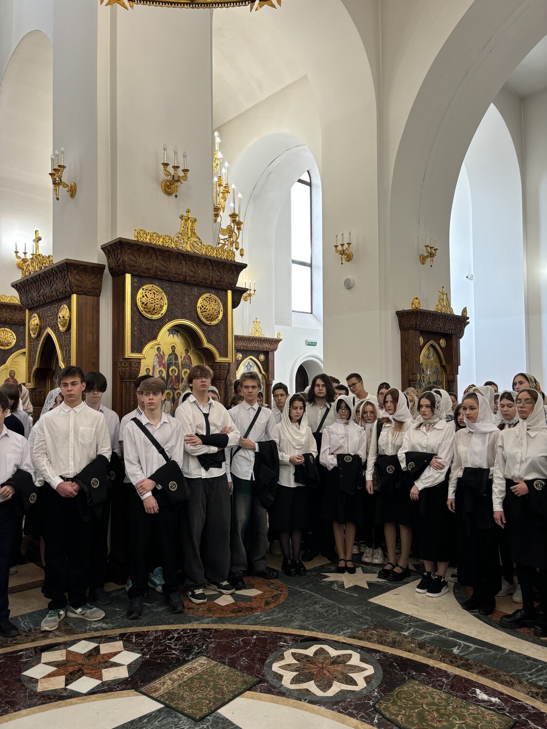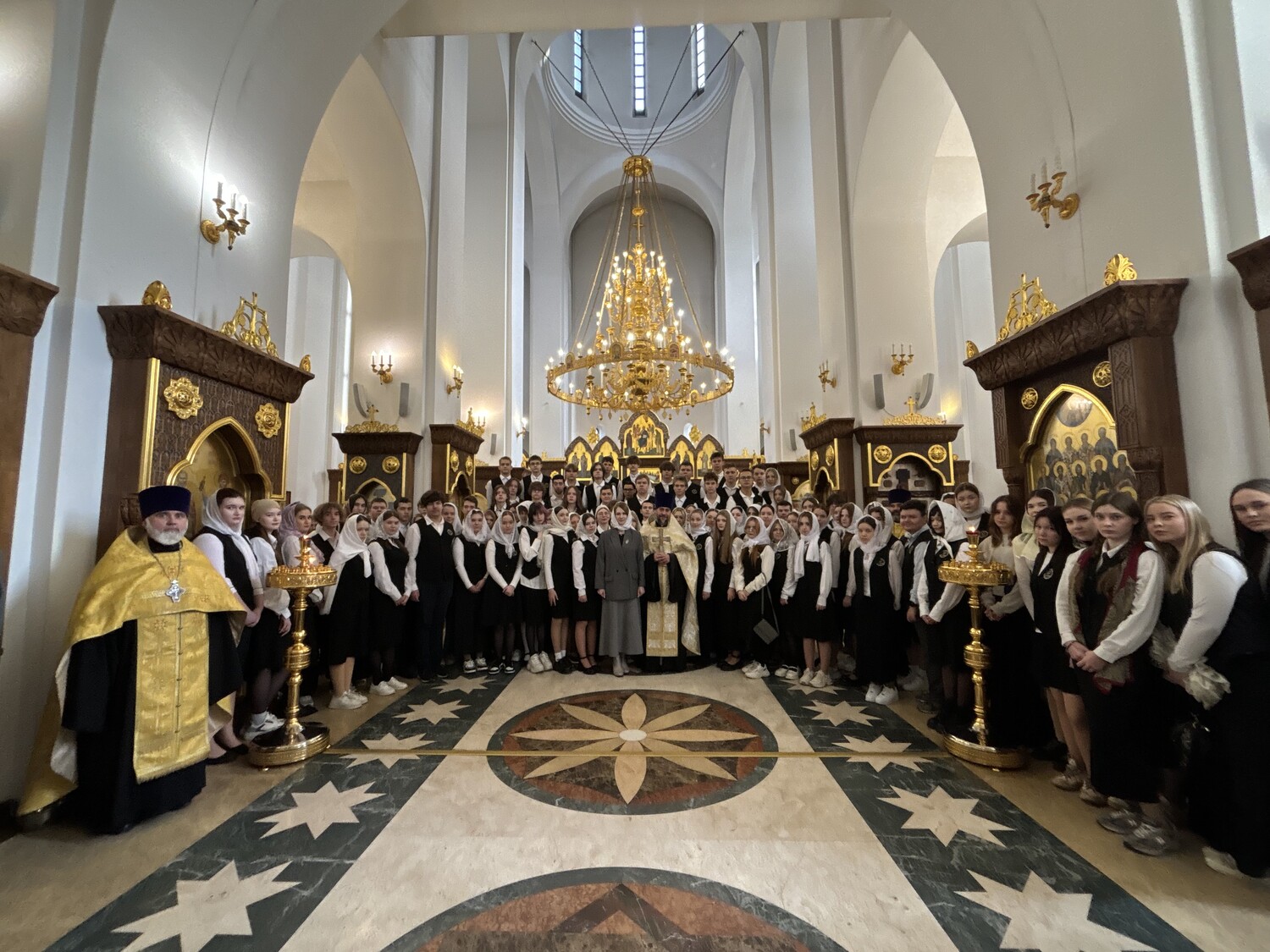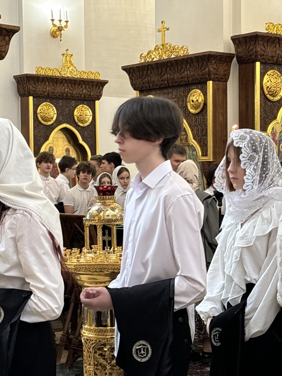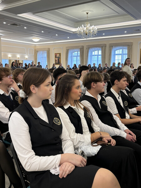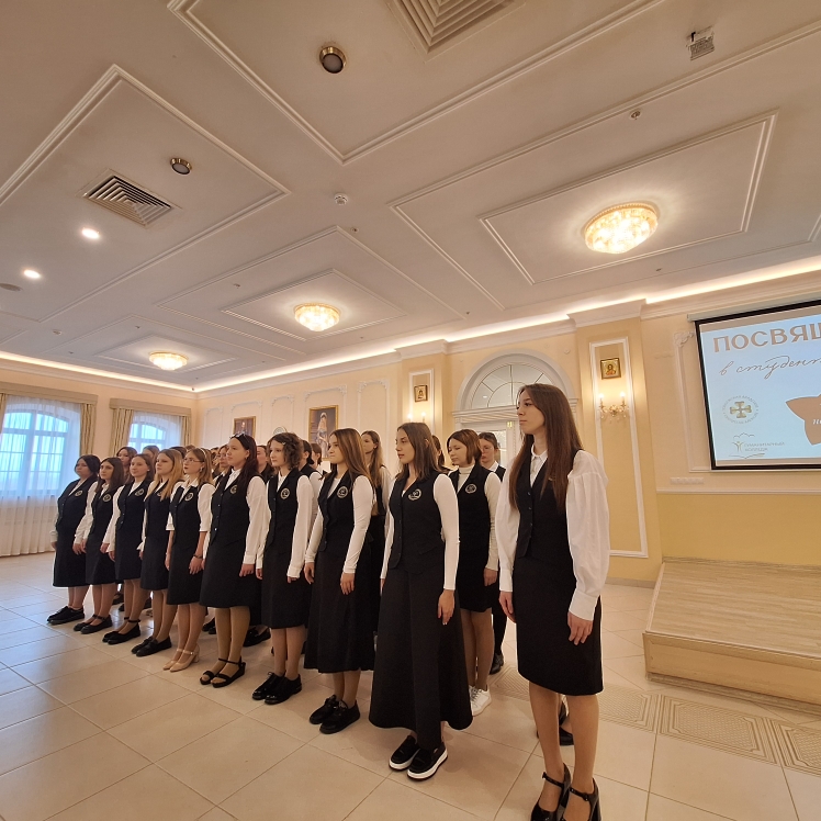 Церемония началась с молебна в домовом храме Академии Святителя Алексия. Отец Димитрий Лескин благословил студентов первого курса носить форму и поздравил их с началом этого непростого, но важного и интересного этапа жизни - студенчества. «Я призываю вас раскрыть свои таланты и посвятить всё лучшее, что в вас есть не только удовлетворению собственных интересов, но желаю вам вырасти и послужить чему-то по-настоящему большому и красивому, приумножить красоту нашего Отечества, видеть счастливые глаза родителей, наполненные благодарностью Богу и радостью за то, что их ребёнок сформировался достойным человеком!» - сказал отец Димитрий.