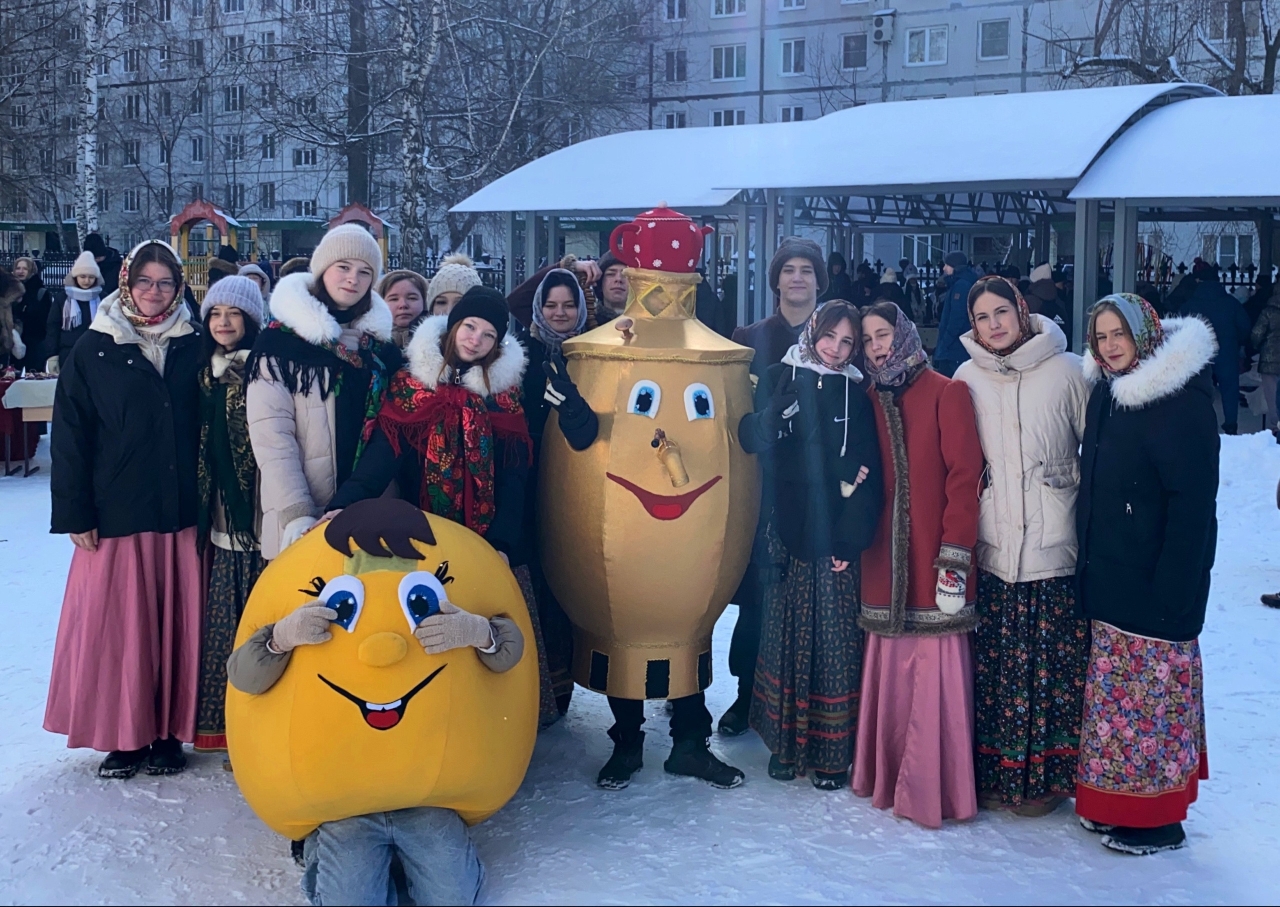 На площади Тольяттинской классической гимназии по окончании литургии учителя, гимназисты, студенты, родители и жители города собрались вместе, чтобы проводить зиму!