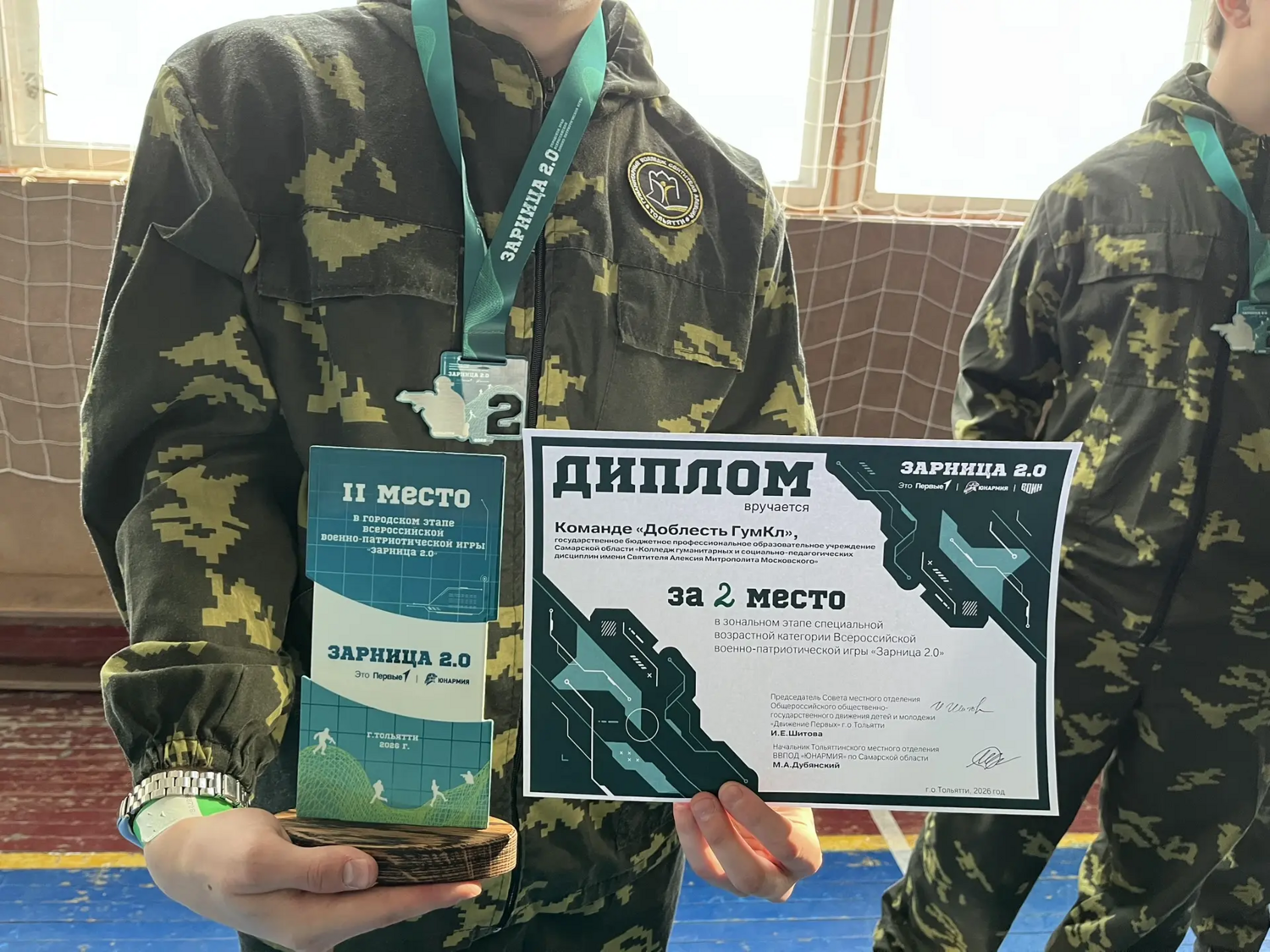 Студенты из военно-патриотического объединения «Доблесть» под руководством Джусоевой О.В. 11 апреля 2026 г. приняли в отборочном этапе Всероссийской военно-патриотической игры «Зарница 2.0» и заняли 2 место!